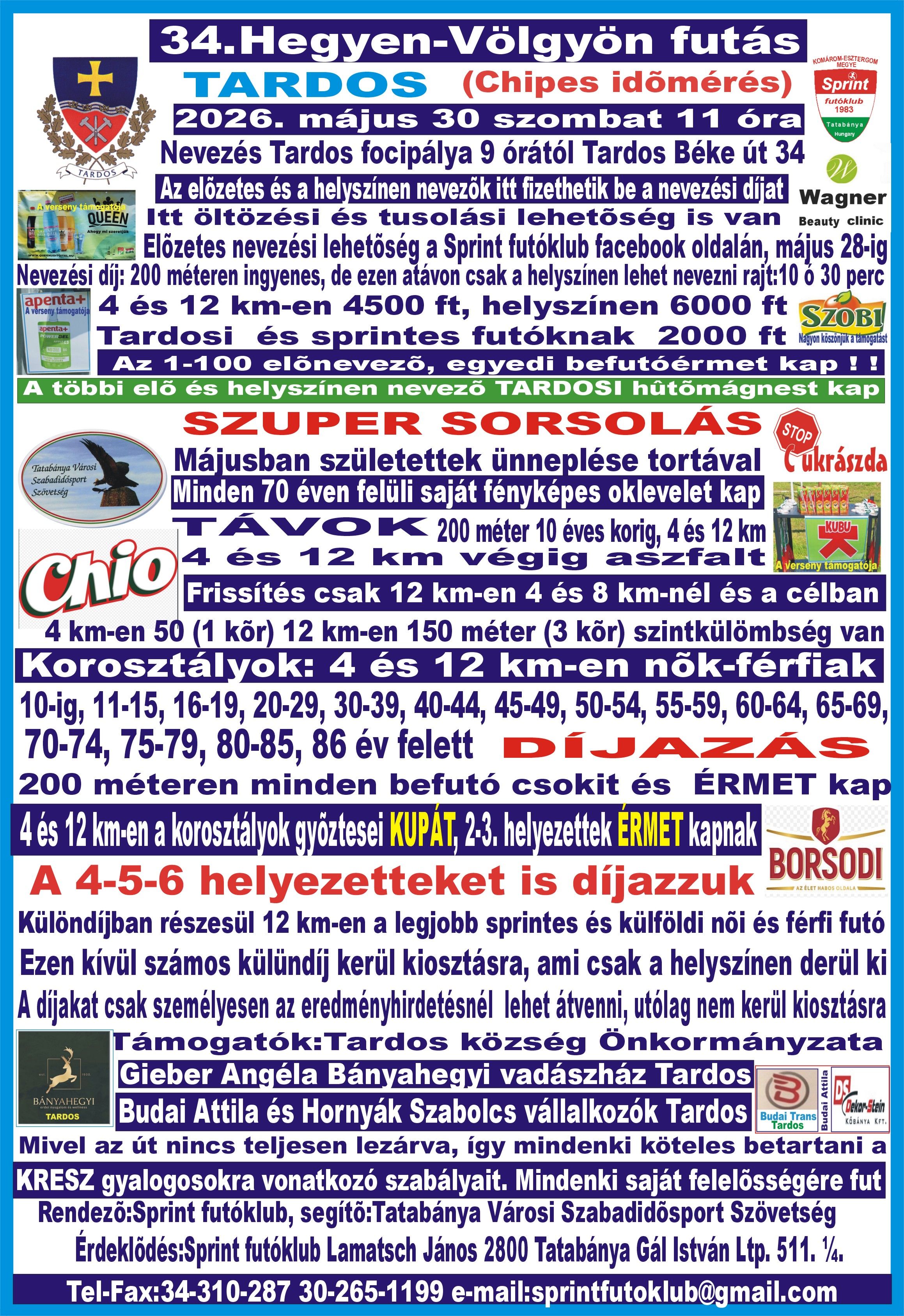 Március 10. hét Már.07.szo. BÜKKI KILÁTÁSOK TRAIL - Felsőtárkány, BNPI ~ ULTRA 14,2-35,6-66,4km. eredmények Már.07.szo. FUSS NEKI FUTÓFESZTIVÁL - Balatonlelle, Móló st. 1,1-2-5-10-21-31km. eredmények Már.07.szo. GYŐRI ÖRÖMFUTÁS - Győr Püspökerdő - facebook - R: Uni Pro Sport 5-10km. nem listás Már.07.szo. LUDOVIKA 15- KEK RUN - Bp. Ludovika tér 2. AKAD 1,1-3,3-5,5-7,7-10-15km. nevezések! Már.07.szo. SCHMIDT FERENC TEREPFUTÓ VERSENY - Pétfürdő Albert park - fb 1-2-6-11km. eredmények Már.07.szo. SZIGETFUTÁS - Építők Margitszigeti Kajak Club - facebook 5,3km. eredmények Már.08.vas. CSÖMÖRSPORT TAVASZVÁRÓ TEREPFUTÓVERSENY (2.) - Csömöri tó - fb 5*2km. eredmények Már.08.vas. GARMIN WTF VRTS - Tatabánya, Csákányospuszta 7t-13t-23t-11km. eredmények Már.08.vas. PÉCS -> HARKÁNY FUTÓVERSENY - Pécs, Verseny u. 11. - R: PVSK 25,6km. eredmények Már.08.vas. PILIS TRAIL 2026 - Piliscsaba, focipálya ~ ULTRA 12,3-22,7-53,3km. eredmények Már.08.vas. VÉRTESKOZMA ROCK AND ROLL FUTÁS - Vérteskozma - fb 1-5-15km. eredmények 11. hét Már.14.szo. GYŐRI ÖRÖMFUTÁS - Győr Püspökerdő - facebook - R: Uni Pro Sport 5-10km. nem listás Már.14.szo. HONVÉD FUTÁS - Budapest, I. ker, Attila út 135. Vérmező 4-10váltó-10km. eredmények Már.14.szo. KERTESI TRAIL RUN - Erdőkertes, Pisztrángos tó 0,7-1,5-3,5-7-12-21-30km. facebook!! Már.14.szo. OXIGÉN KUPA - terepverseny - Debrecen, Nagyerdő 1,5-2,5-5-10km. eredmények Már.14.szo. VADÁLLÓ TRAIL - körverseny Dömösről Prédikálószékre 8,6-17,2-34,4-51,6km eredmények