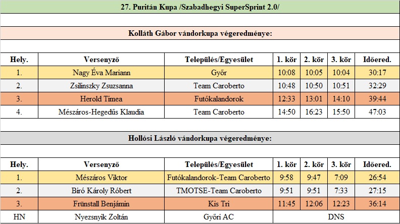 PURITÁN KUPA /SZABADHEGYI SUPERSPRINT 2/ - Győr, Rózsák tere 3*2km.