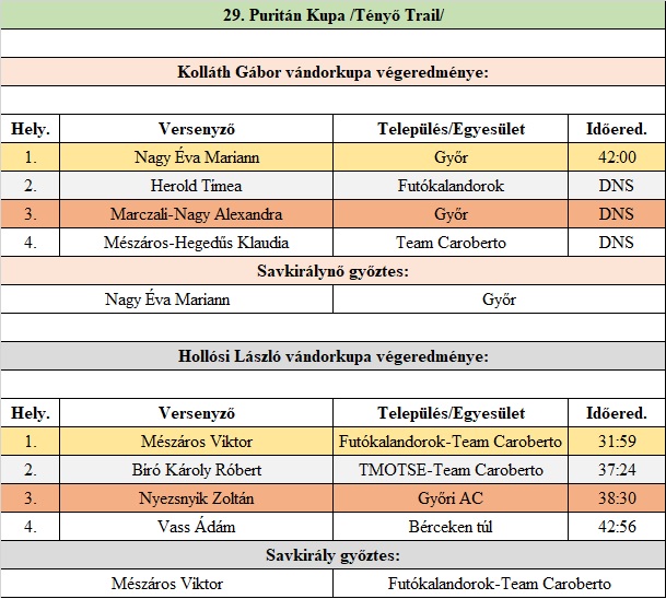 ULTRAVERSENYEK 9,7-43-69km. eredmények